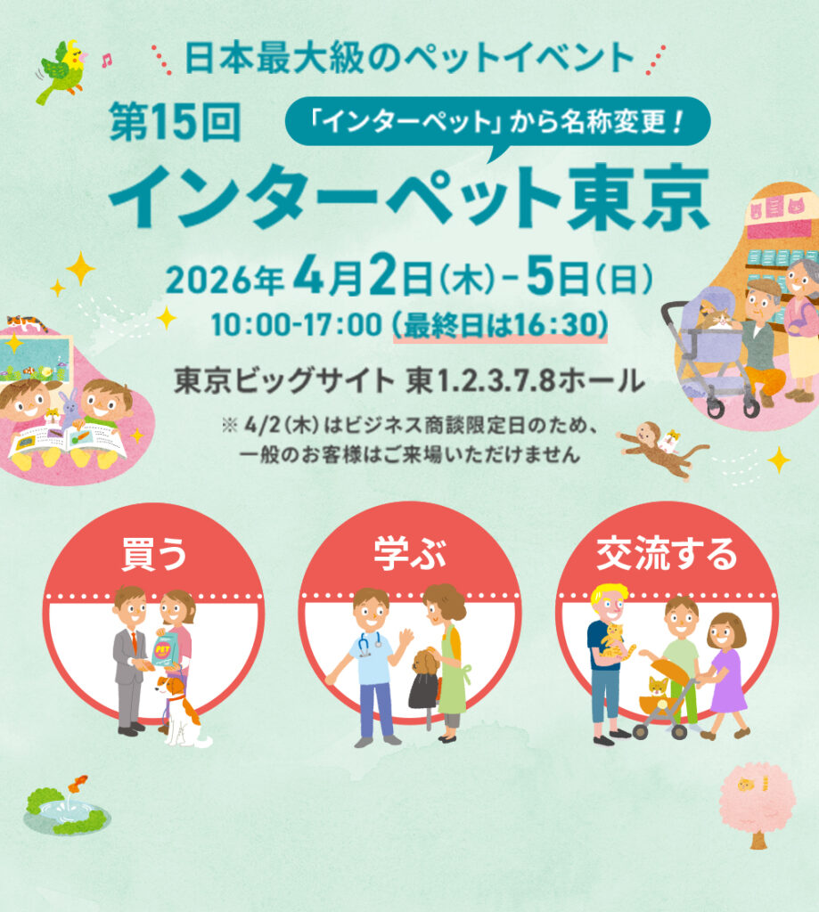4/2(木)〜4/5(日)に東京ビッグサイトで開催される日本最大級のペットイベント「第15回 インターペット東京」に出展します。(4/2(木)はビジネス商談限定日のため、一般のお客様はご来場いただけません。)